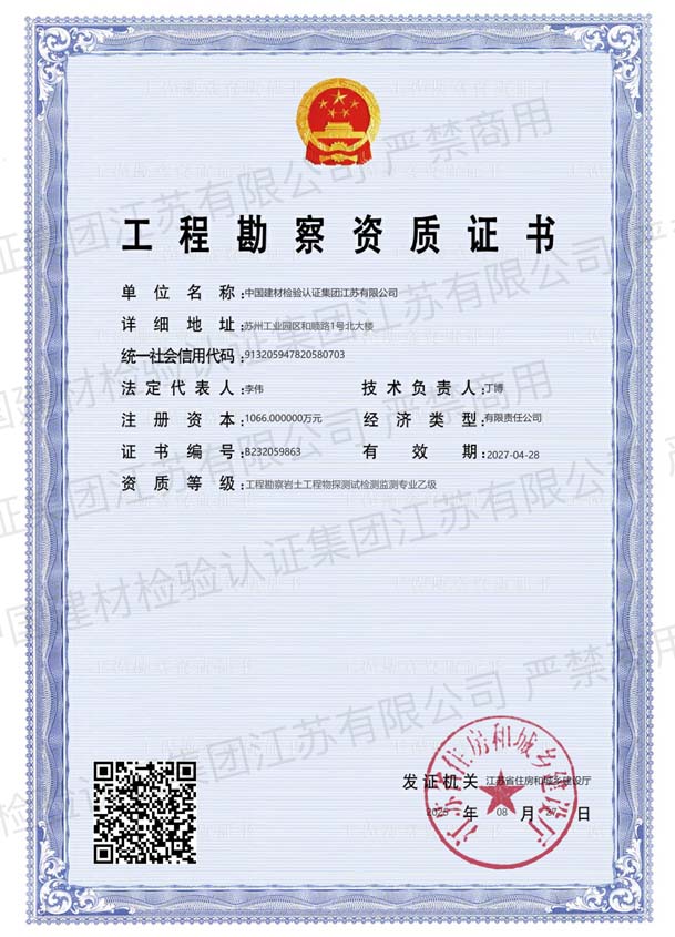 • 建設工程質量檢測機構資質